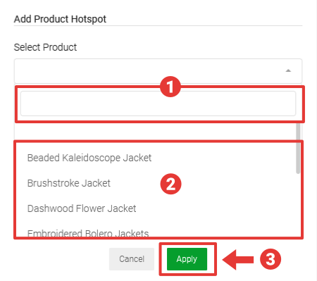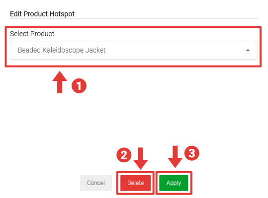 - Click on the Select Product drop-down and select another product if you wish to swap the existing Hotspot for a different Product.