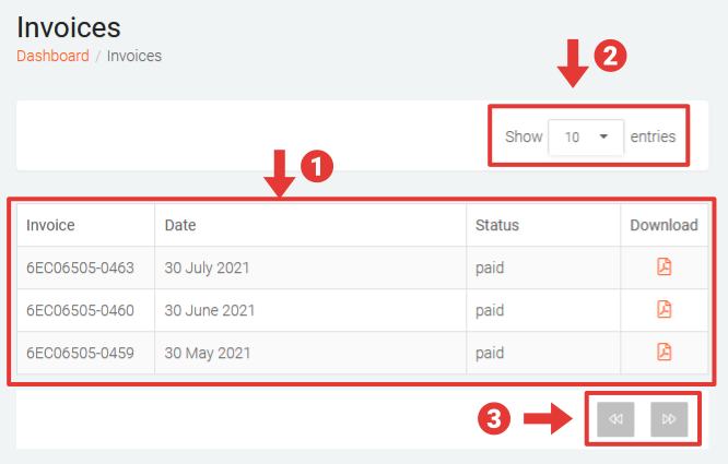 - Locate the required invoice and click on the download icon to download a PDF copy of the invoice.