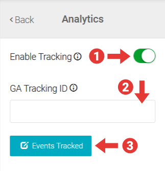 This article covers Configuring Event Display with your Google Analytics ID and selecting which Google Analytics Events to Track in Event Displays