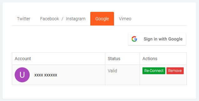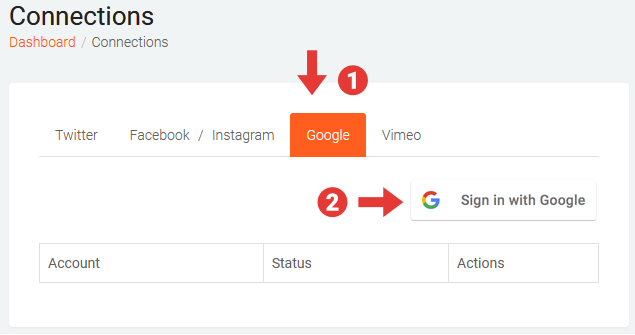 Before you can start aggregating content from YouTube, your Buzzspark account must have at least one valid connection with a Google account.