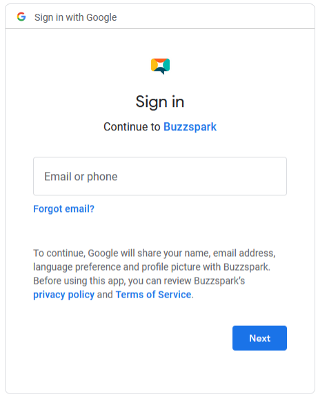 || An individual Google account can only be connected to one Buzzspark account. To connect the same Google account with another Buzzspark account, you must first remove it from any other Buzzspark account it is already connected with.