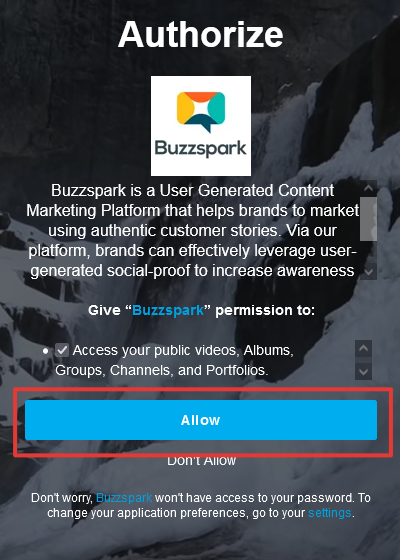 Step Four: Authorise Buzzspark to access your Vimeo account