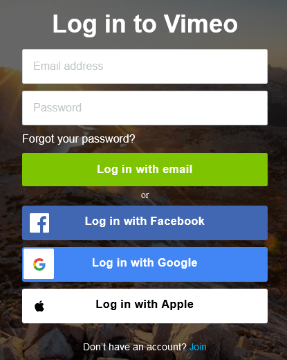 - Then click on the Sign in with Vimeo button.
