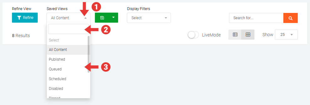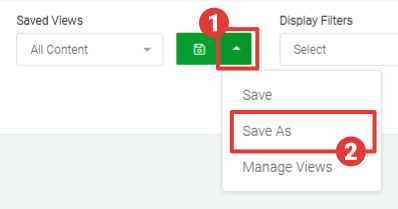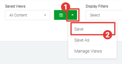 Once you have refined the content and adjusted the interface settings to your needs, you can save the settings using the Saved View drop downs so the exact settings can be quickly reloaded in the future. You can also share saved views with your team members which helps save time and is particularly useful when individual team members are managing content for specific campaigns or purposes.