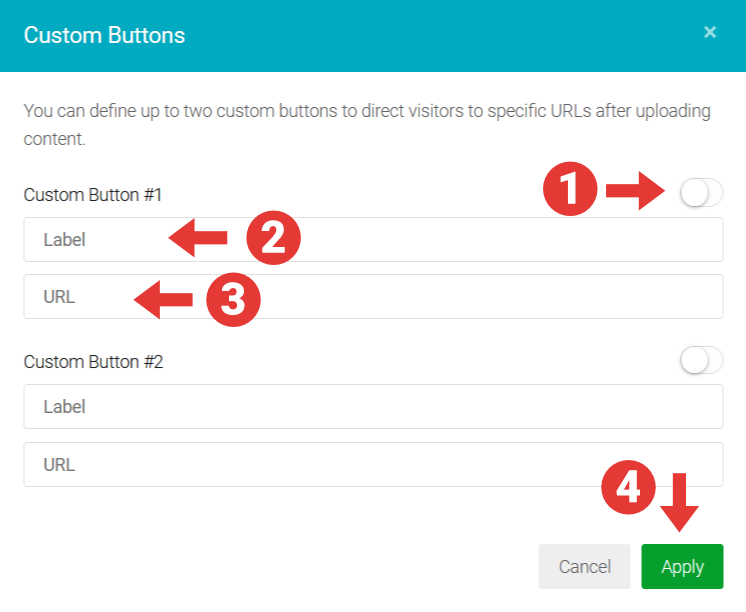 Custom Buttons – you can define custom buttons to direct visitors to specific URLs after they have completed their submission.