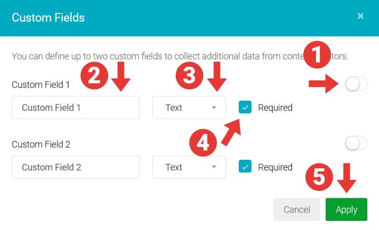 Custom Fields – click to define custom fields to collect additional data from content creators.
