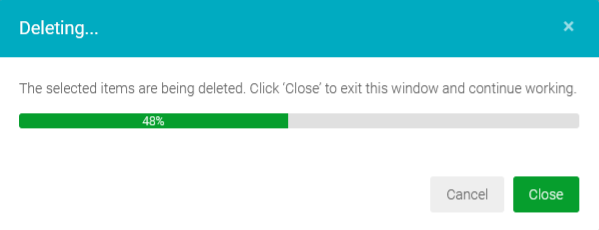 || Clicking Cancel in the progress model will stop the operation, however any Tiles already deleted cannot be recovered.