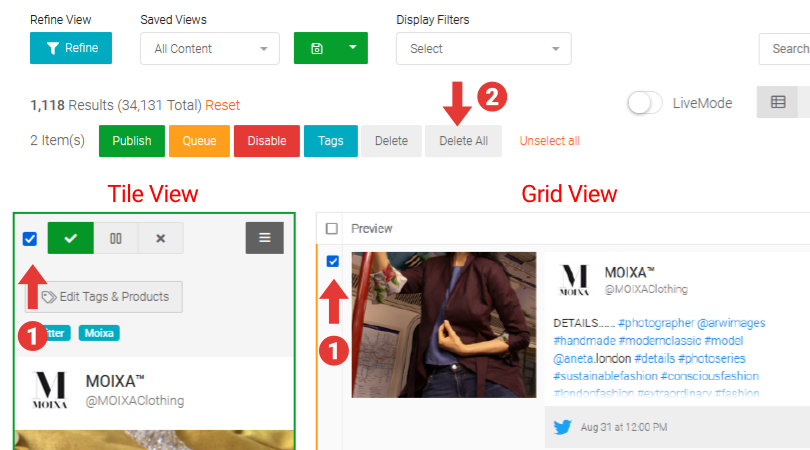 Once the Moderation View refreshes to show Tiles matching your specified criteria:
