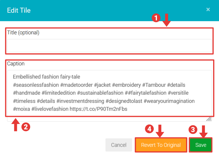 - Click the Revert To Original button if you wish to revert to the Tile’s original content. This option is only available it the content has been previously edited.
