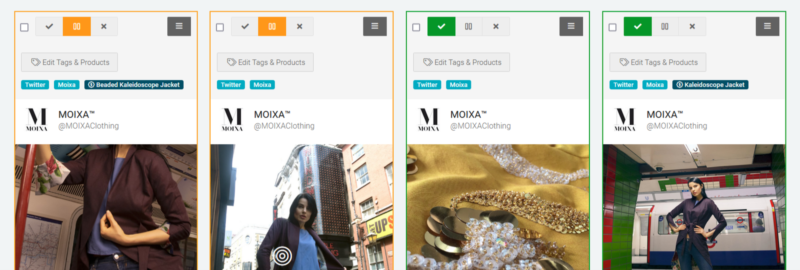 All aggregated content appears in the Moderation section of Buzzspark, where you can take further actions, such as selecting which pieces of content you wish to Publish, Disable, or leaves as Queued.