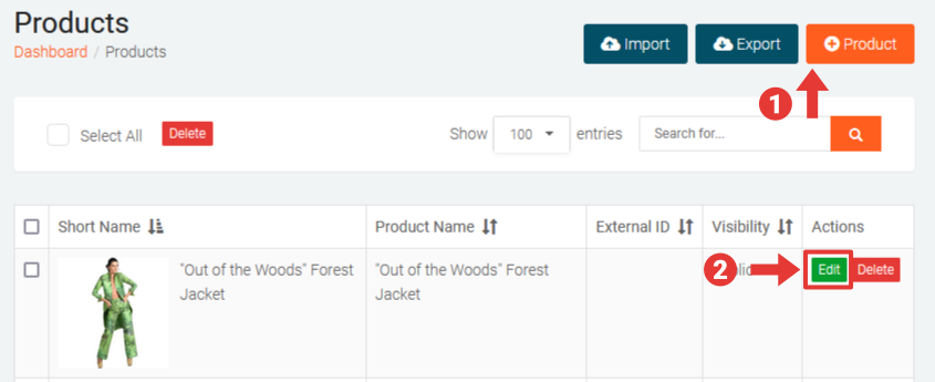 - Click on the Edit button under the Actions column for an existing Product you wish to edit.