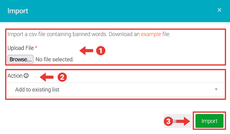 Add to existing list Selecting this option adds words in the uploaded file to the current list, updating any existing entries if applicable.
