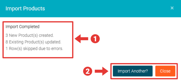 - Click on the Import Another? button to import another CSV file or the Close button to dismiss the modal.