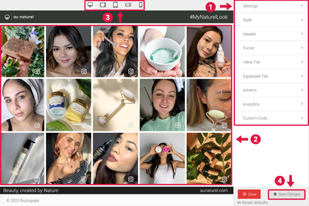 - Click on any of the tabs to customise settings as required.