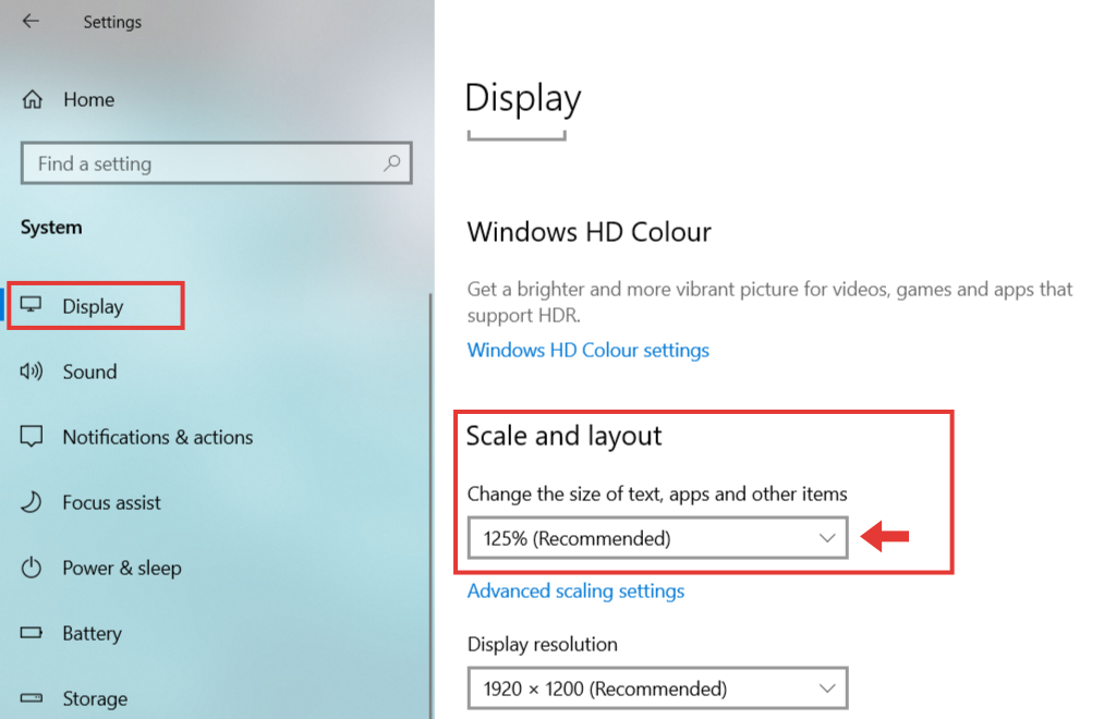 - Change the scaling for the display through your computer’s operating system: