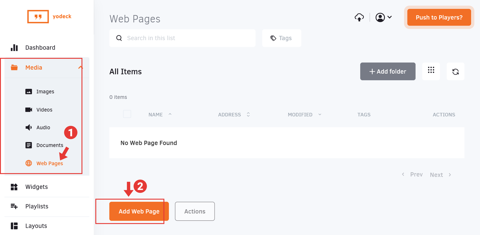 Sign in to Yodeck.
