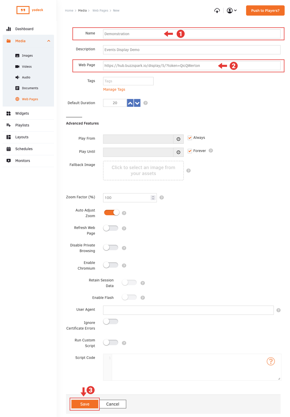 When adding a Web Player, the key information you will need to enter includes: