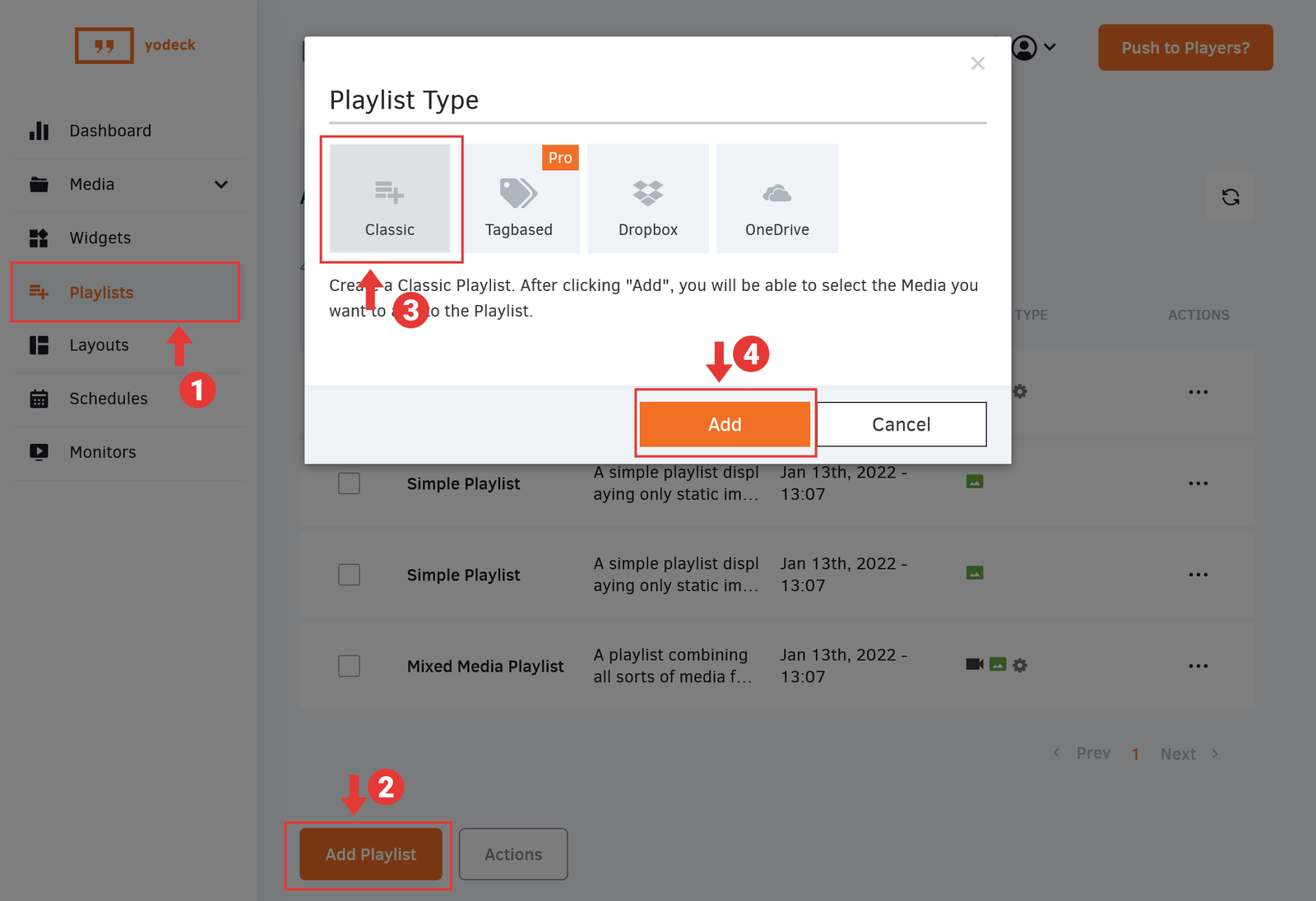 - In the Playlist Type modal, click Classic to select it.