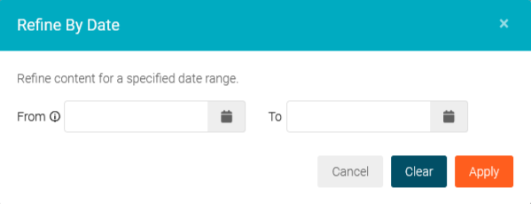 - Date – click to filter content based on date and enter the date criteria in the Refine by Date modal.