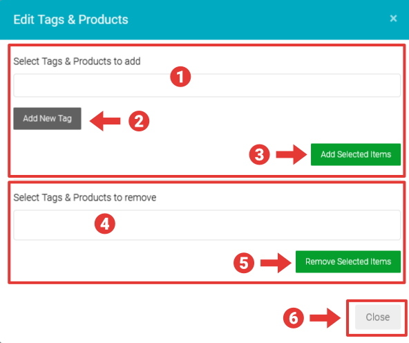 In the Edit Tags & Products modal: