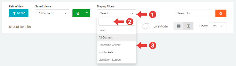 - Click on the Display Filters drop-down