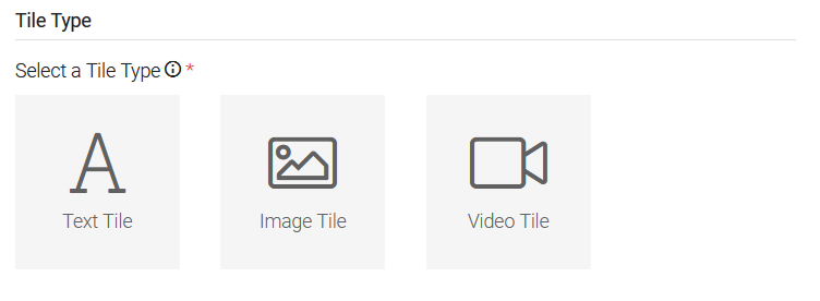 Select the type of Tile you want to create by clicking on one of the Text Tile, Image Tile or Video Tile buttons.