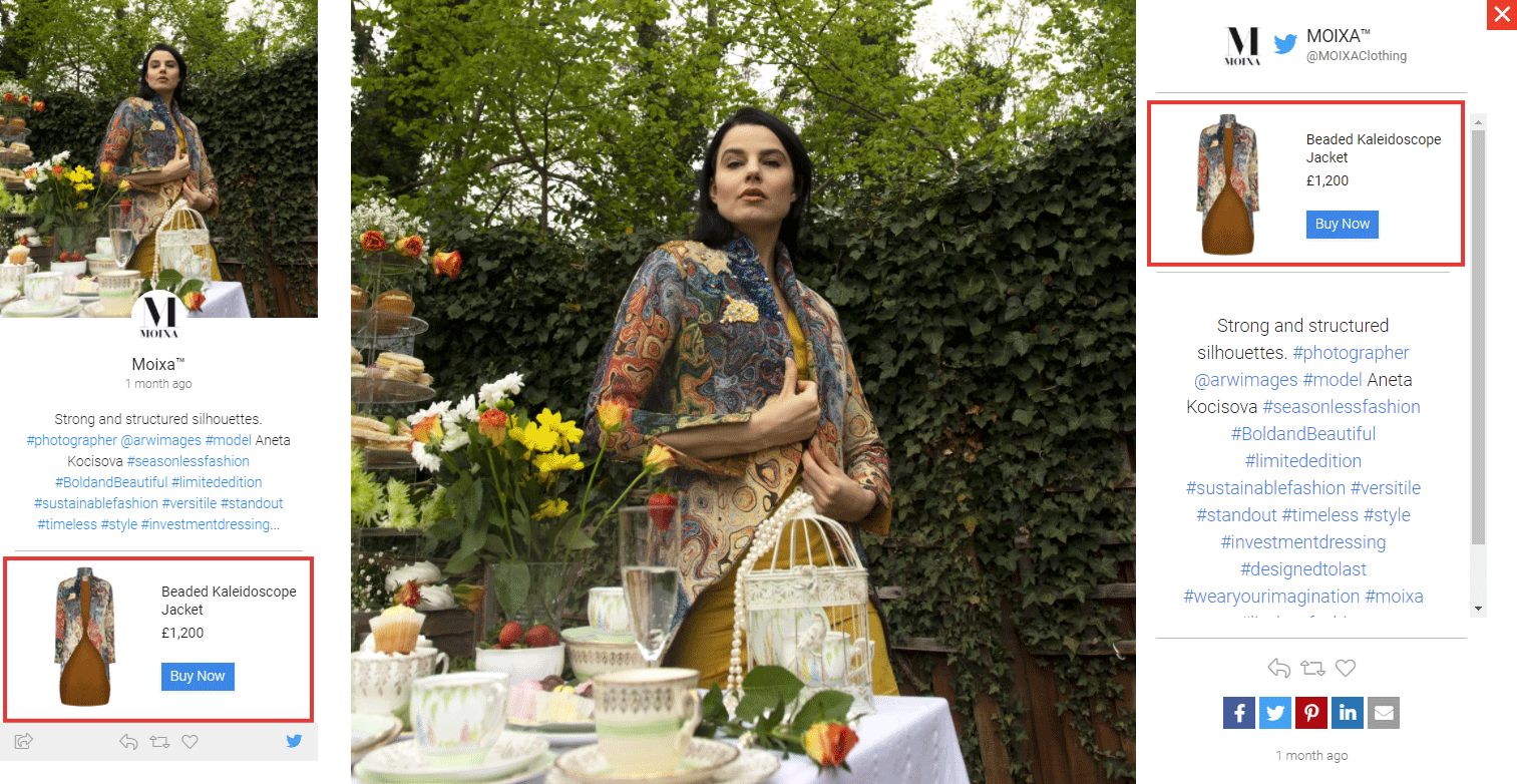 Since each Product Tag relates to a unique item in your product catalogue, including key information such as the product name, description, price, image, and link to purchase or learn more about the product, this information can easily be displayed on relevant UGC, providing a frictionless purchasing experience for your audience.
